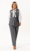 Костюм женский классический это идеальное решение для Вашего гардероба. Комплект состоит из двух предметов — прямые брюки с высокой посадкой прямого кроя на молнии и на резинке, с боковыми карманами сочетаются с любыми базовыми вещами. Универсальный классический жилет с V-образным вырезом горловины превосходно садится по фигуре, на правой полочке обработан прорезной карман с листочкой, на левой разрез , застежка обработана на отлетном хлястике ,на петлю и пуговицу. Этот элемент делает его более интересным. Жилет на подкладке . Ассиметричный жилет можно одевать поверх тонкой одежды. Базовый брючный костюм идеален для повседневного образа на работу в офис,школу, а при нарядной блузке комплект превращается в нарядный. Современный костюм также будет хорошо смотреться как вечерний наряд на различные мероприятия, праздники, день рождения, корпоратив. Шикарный нарядный станет незаменимым в Вашем гардеробе . Этот костюм подчеркнет Вашу уверенность и стиль.