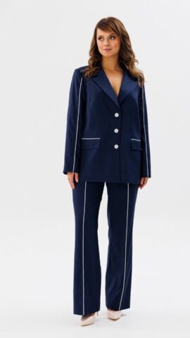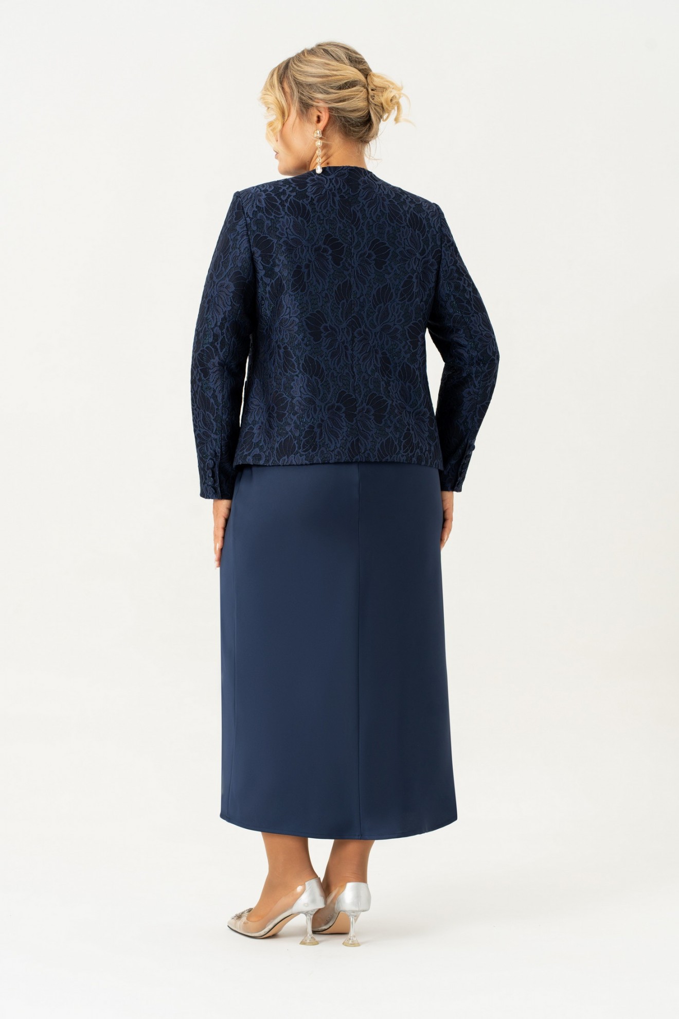 Красивый и стильный комплект в элегантном сочетании однотонного платья из атласа и жакета из кружевного жаккарда подойдет и для строгого образа, и для создания светлого, яркого и нежного лука с романтичными мотивами. Жакет короткий, полуприлегающего силуэта на подкладке. Спинка со средним швом. По переду жакета есть рельефные швы от плеча. Застёжка на петли и пуговицы. Рукав втачной , длинный, двухшовный. Горловина круглая, смотрится очень актуально и эффектно в сочетании с накладными карманами. Этот жакет подойдет и к брюкам и к платью, что позволяет создать много шикарных образов. Второй элемент комплекта — платье из струящегося атласа, кроенное по косой, что обеспечивает красивую посадку и мягкое облегание по фигуре. Углубленная горловина добавляет лёгкой чувственности, а нагрудные вытачки от проймы подчёркивают линию груди. Выбор этого стильного наряда станет замечательным дополнением вашего гардероба для особых случаев, обеспечивая вам стиль и комфорт.